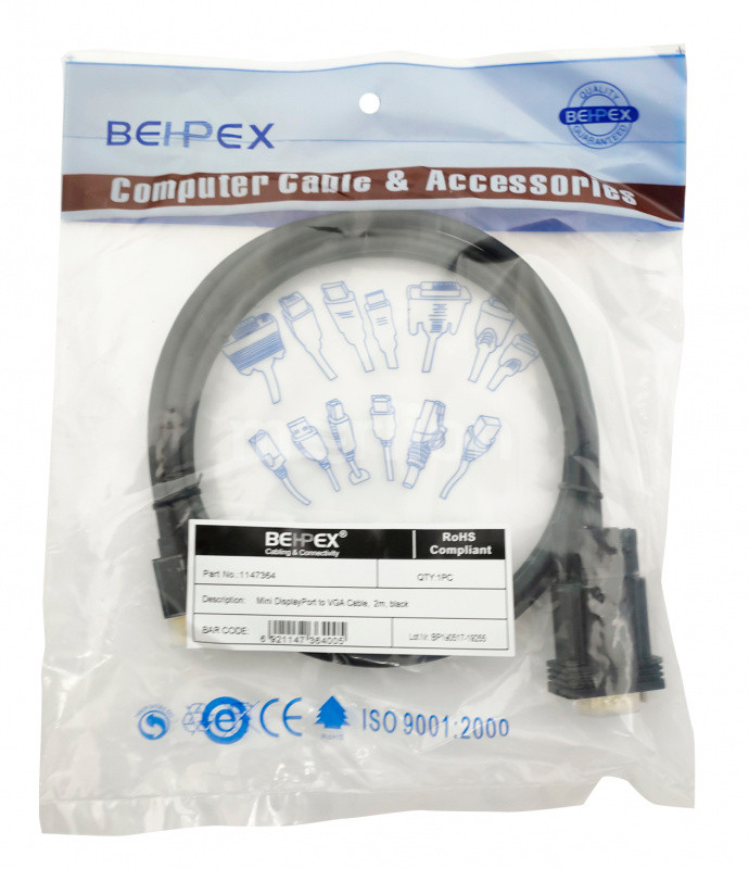 Кабель Noname miniDisplayPort (m) VGA (m) 2м (черный)