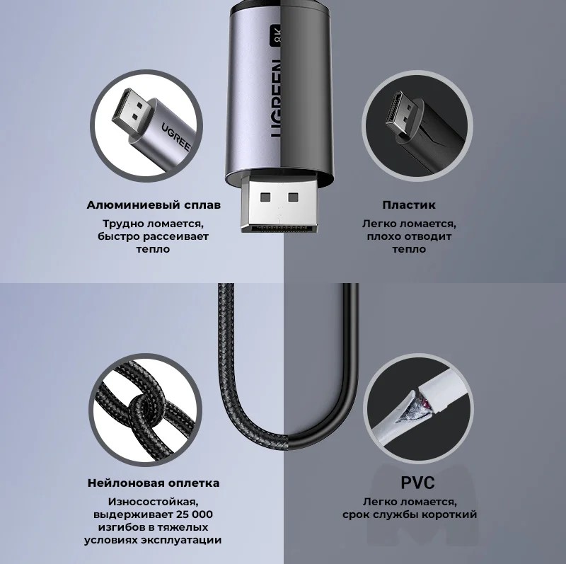 Кабель Ugreen CM556-1 серый (25157)
