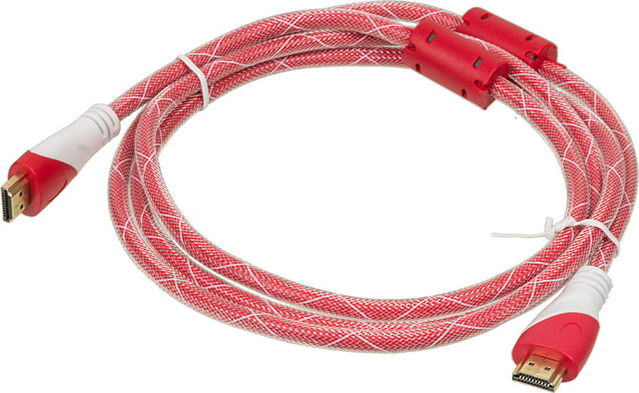 Кабель Noname HDMI (m)/HDMI (m), ver 1.4, GOLD, ферритовый фильтр, 1.8м красный