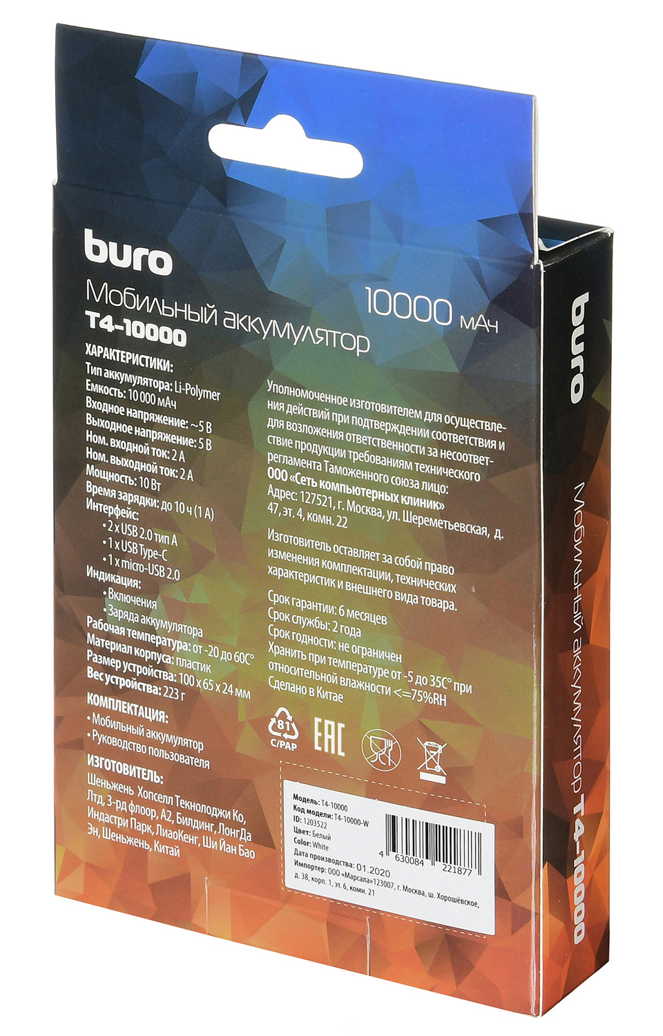 • Емкость аккумулятора (мАч): 10000