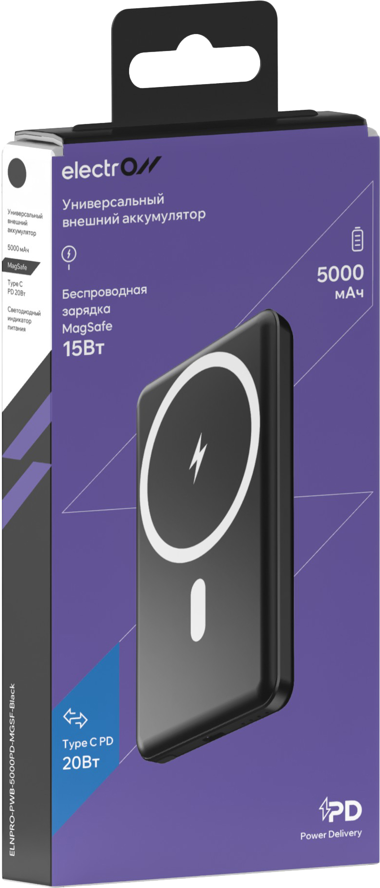 Беспроводное зарядное устройство Electron 5000мАч TypeC 20Вт Magsafe 15Вт черный (ELNPRO-PWB-5000PD-MGSF)