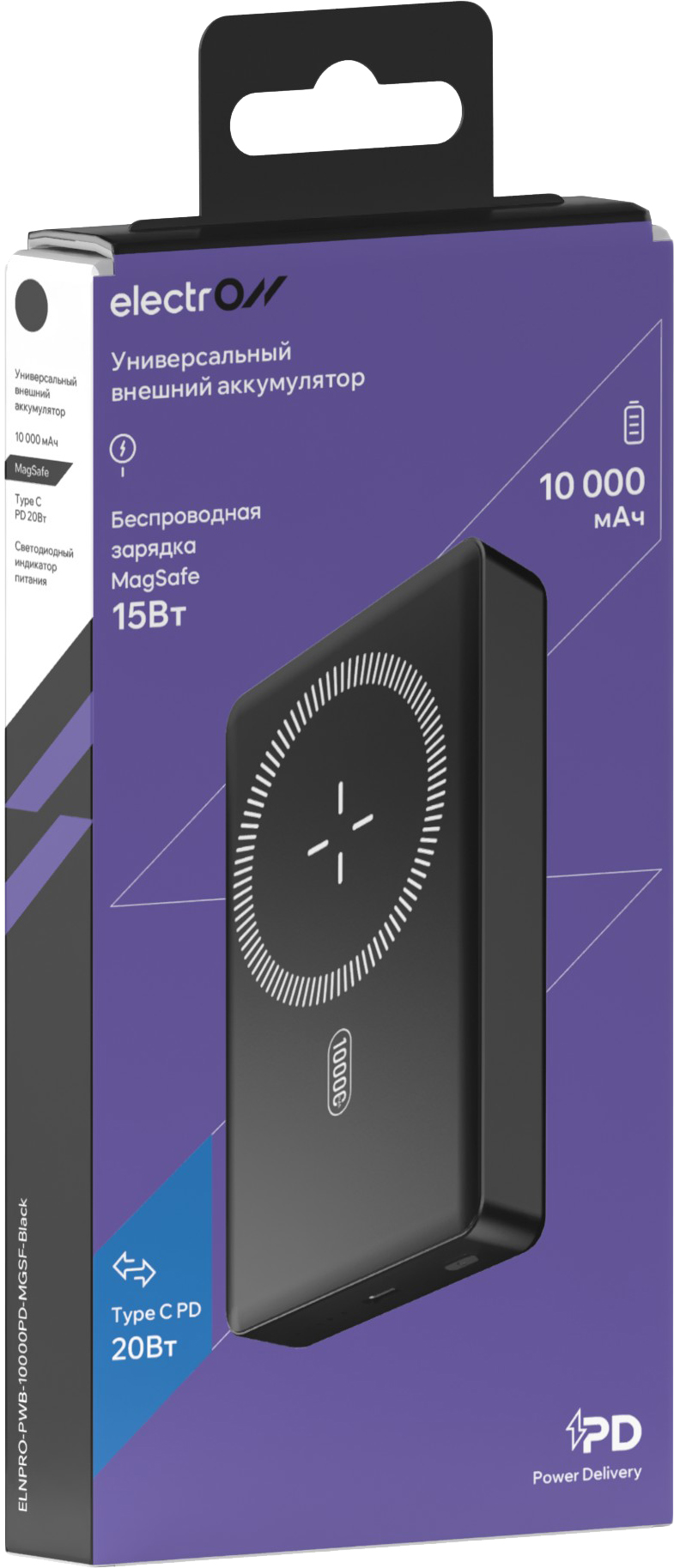 Портативное зарядное устройство Electron 10000мАч TypeC 20Вт MGSF 15Вт черный (ELNPRO-PWB-10000PD-MGSF)