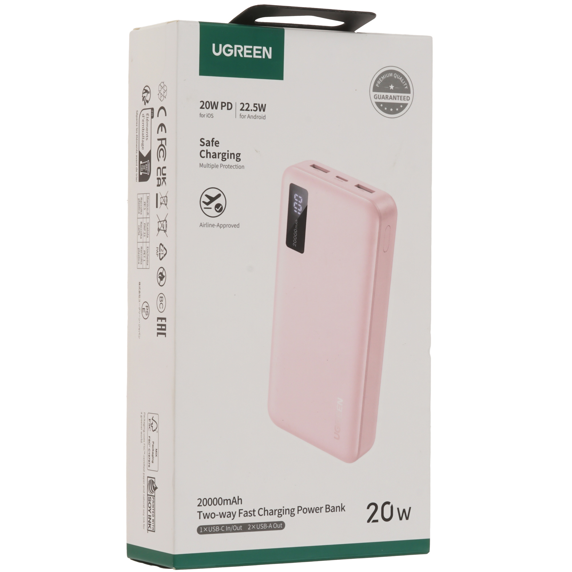 • Дополнительно: Количество выходных разъемов USB Type-A - 2 шт; Виды защиты - от короткого замыкания, от перегрева, от перегрузки, от перепадов напряжения; Количество выходных разъемов USB Type-C - 1 шт; Дисплей - ДА; Входные разъемы на корпусе - USB Type-C; Мощность устройства, заявлено производителем - 22.5 Вт; Удельная емкость - 67.48 мАч/см; Номинальное напряжение батареи - 3.7 В; Выход на порт - Type-C: 5В=3А, Type-C: 9В=2.22А, Type-C: 12В=1.67А, USB-A1-2: 5В=3А, USB-A1-2: 9В=2А, USB-A1-2: 10В=2.25А, USB-A1-2: 12В=1.5А; Зарядка маломощных устройств - ДА; Емкость аккумулятора, заявлено производителем - 74 Вт*ч