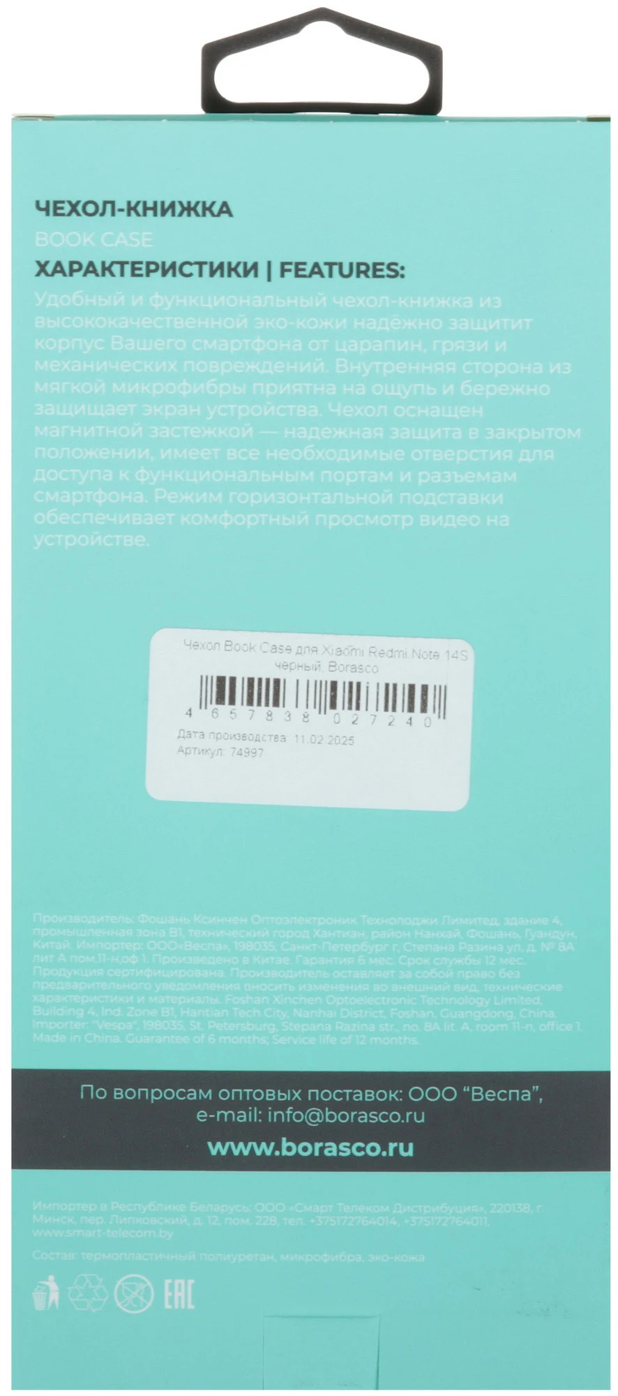Чехол-книжка BoraSco Book Case для Xiaomi Redmi Note 14S (черный)