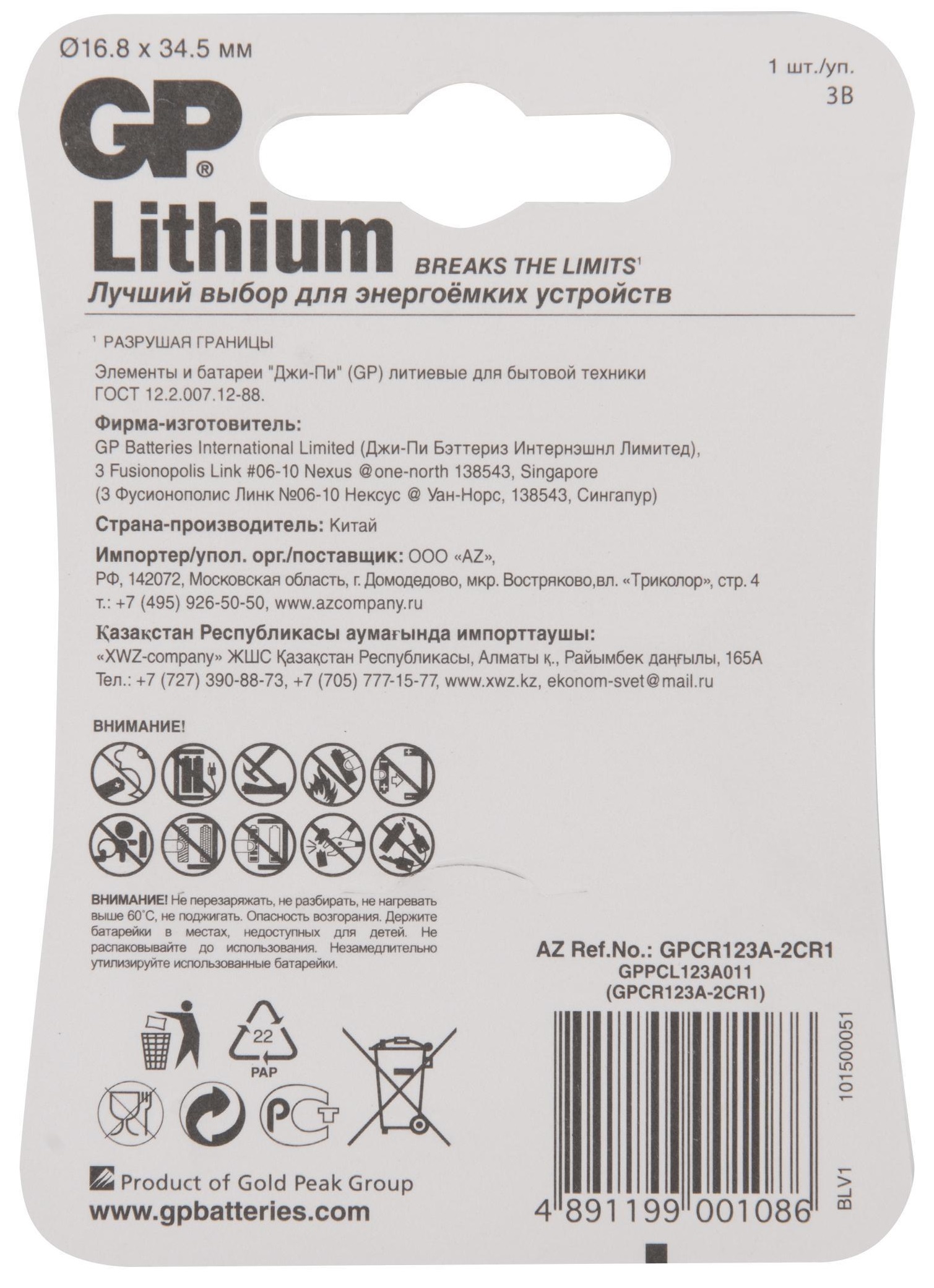 Компания GP заботится об экологии, благополучии окружающей среды и здоровье своих пользователей. Поэтому при производстве элементов питания GP не применяются ртуть, свинец и кадмий. Лучший способ утилизировать литиевые батарейки после завершения срока работы – это поместить их в специальный контейнер или сдать в пункт приема для последующей переработки.