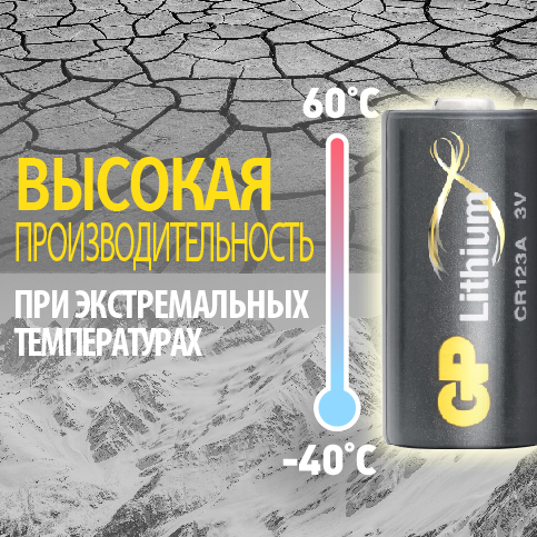 Один из важнейших плюсов литиевых элементов питания – стабильная работа в широком диапазоне температур: от –30 до +65С.