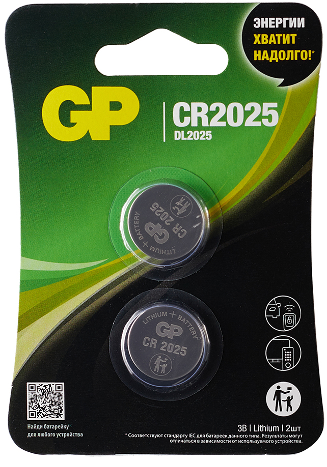 Батарейка GP Lithium CR2025 - 2 шт. в блистере
