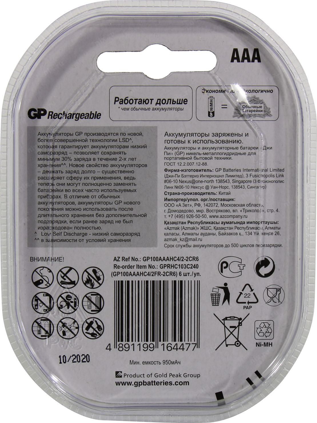 Аккумулятор GP 100AAAHC4 (GP 100AAAHC4/2-2CR6 36/360)