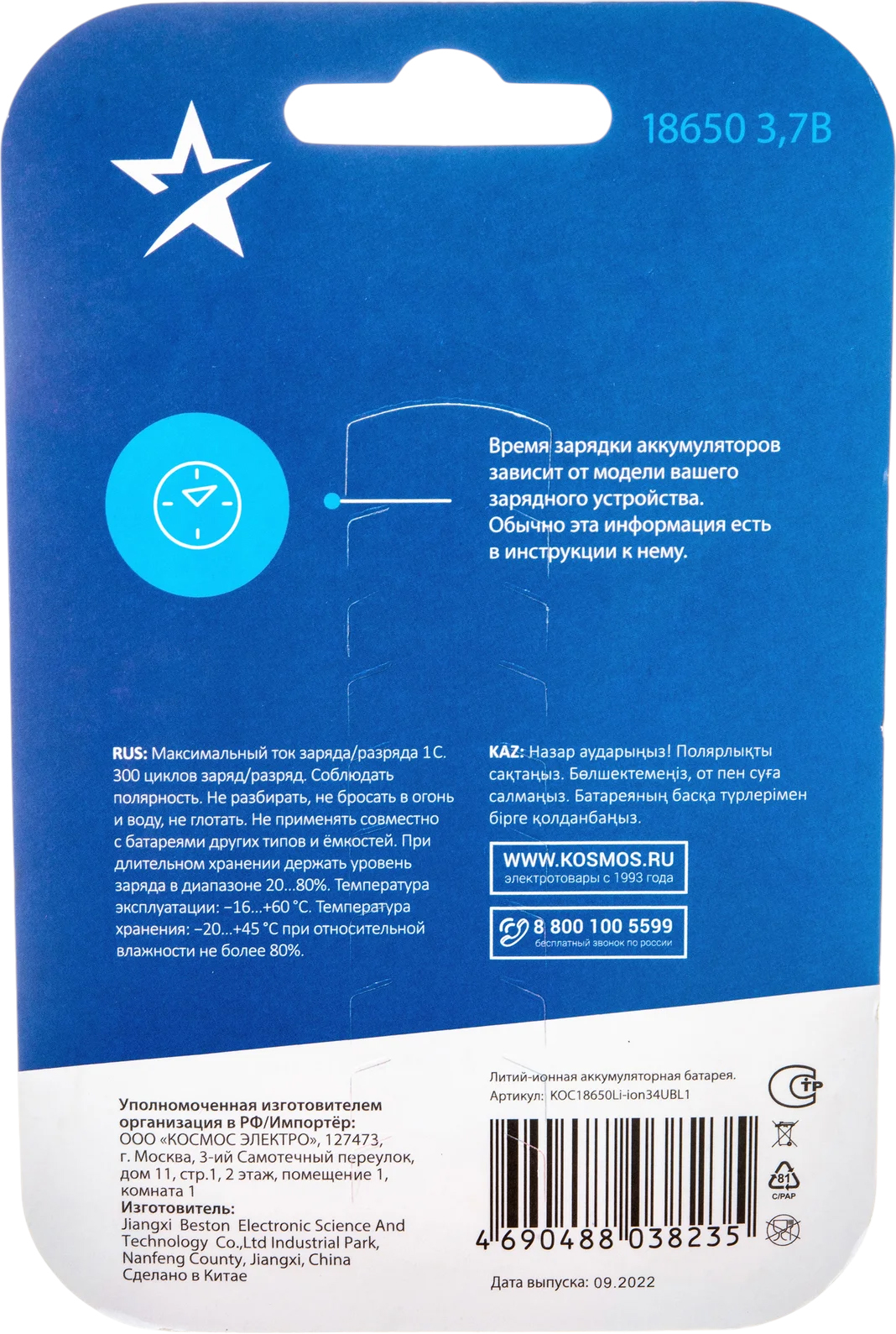 Аккумулятор Космос KOC18650Li-ion34UBL1