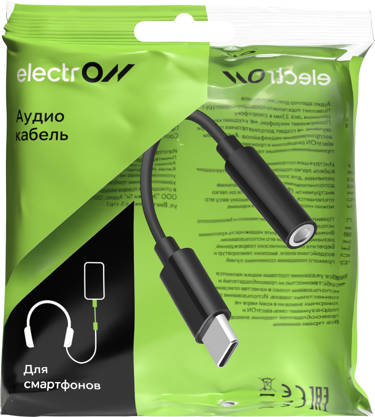 Кабель Electron TypeC-MiniJack 0.1м черный (ELN-ADP-TYPECAUX-PVC)