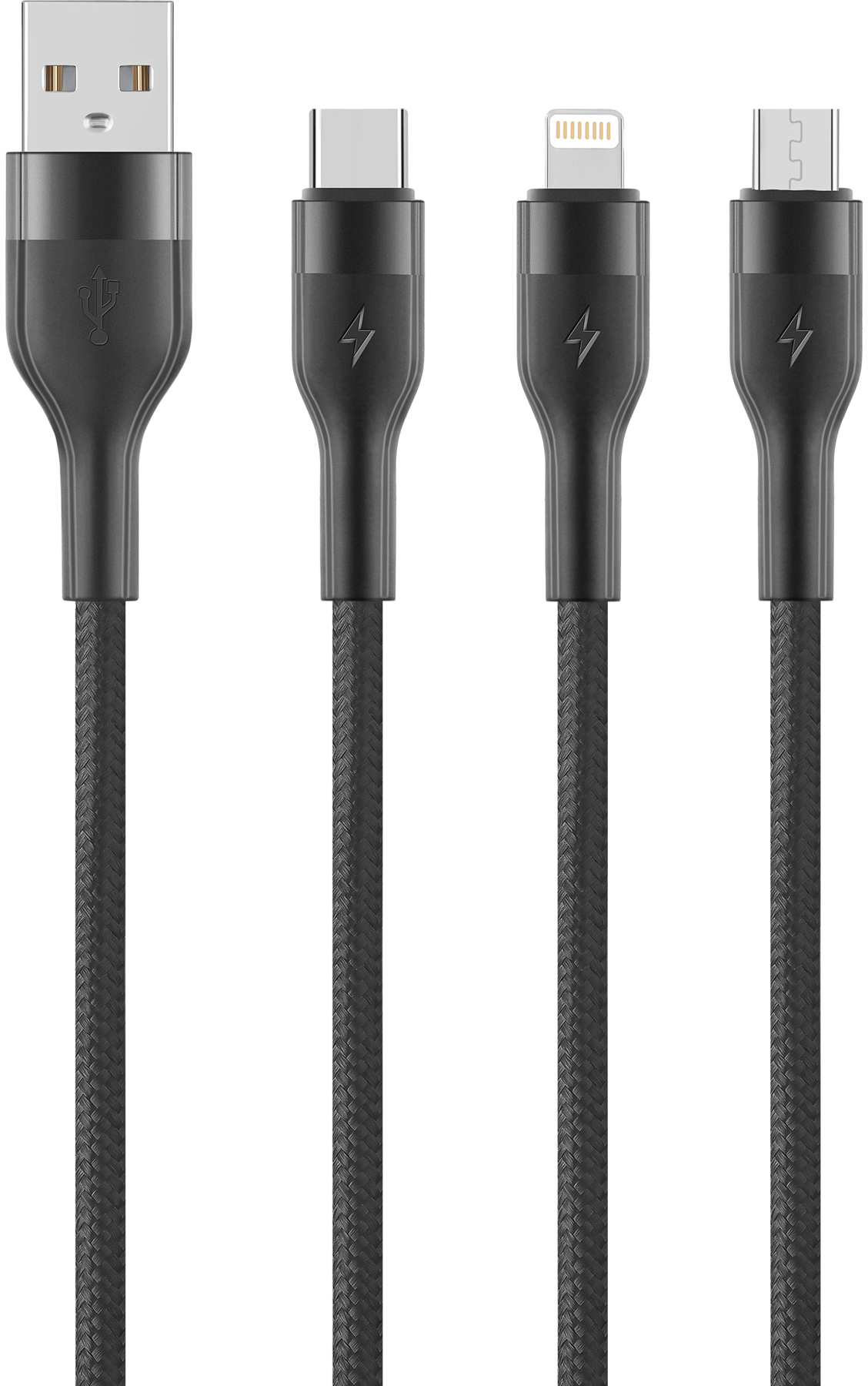 Кабель Electron TypeC+Micro+Lightning 1м черный (ELNPRO-CAB-3IN1-1-NLN USBA)