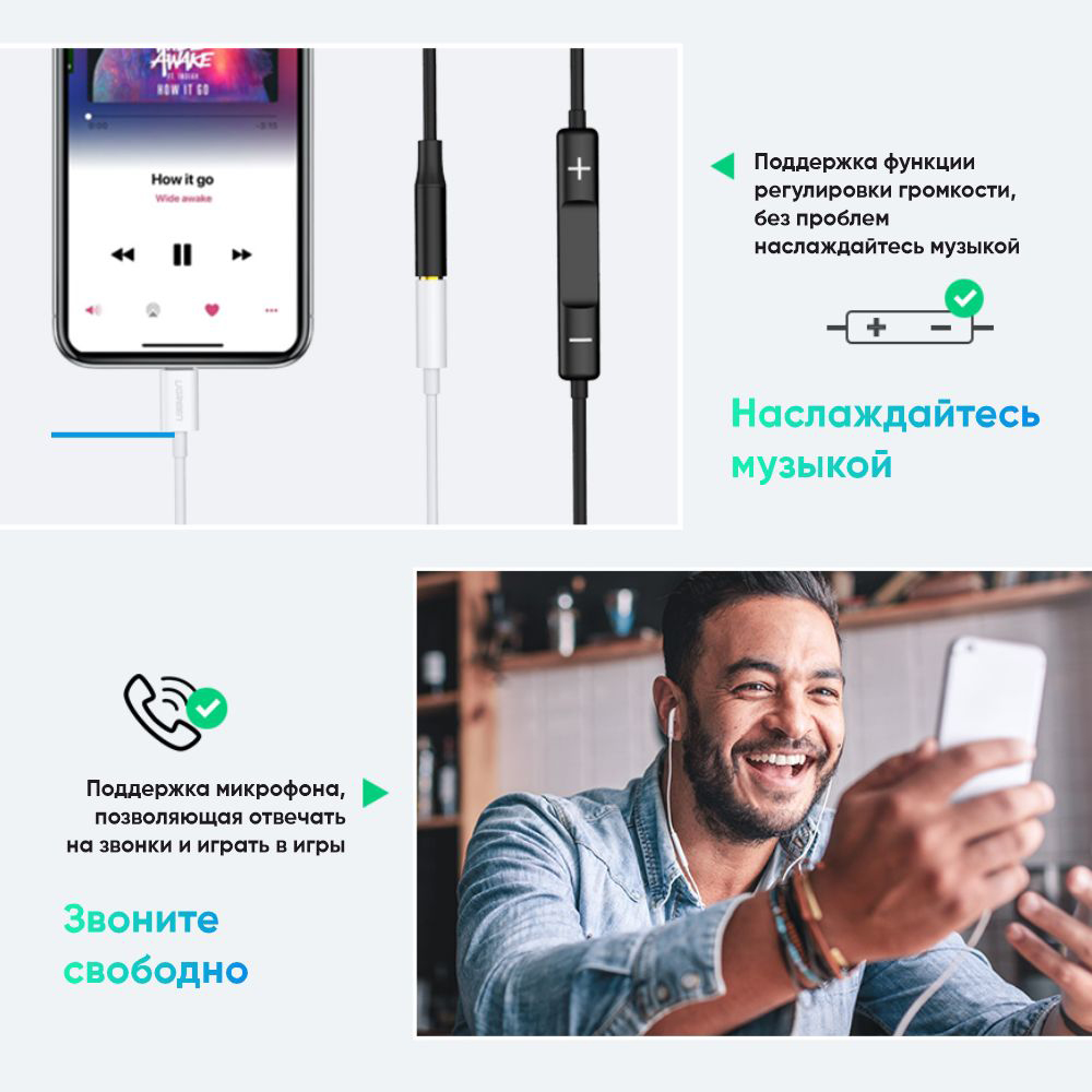 • Интерфейс подключения: Apple Lightning, mini Jack (3.5мм)