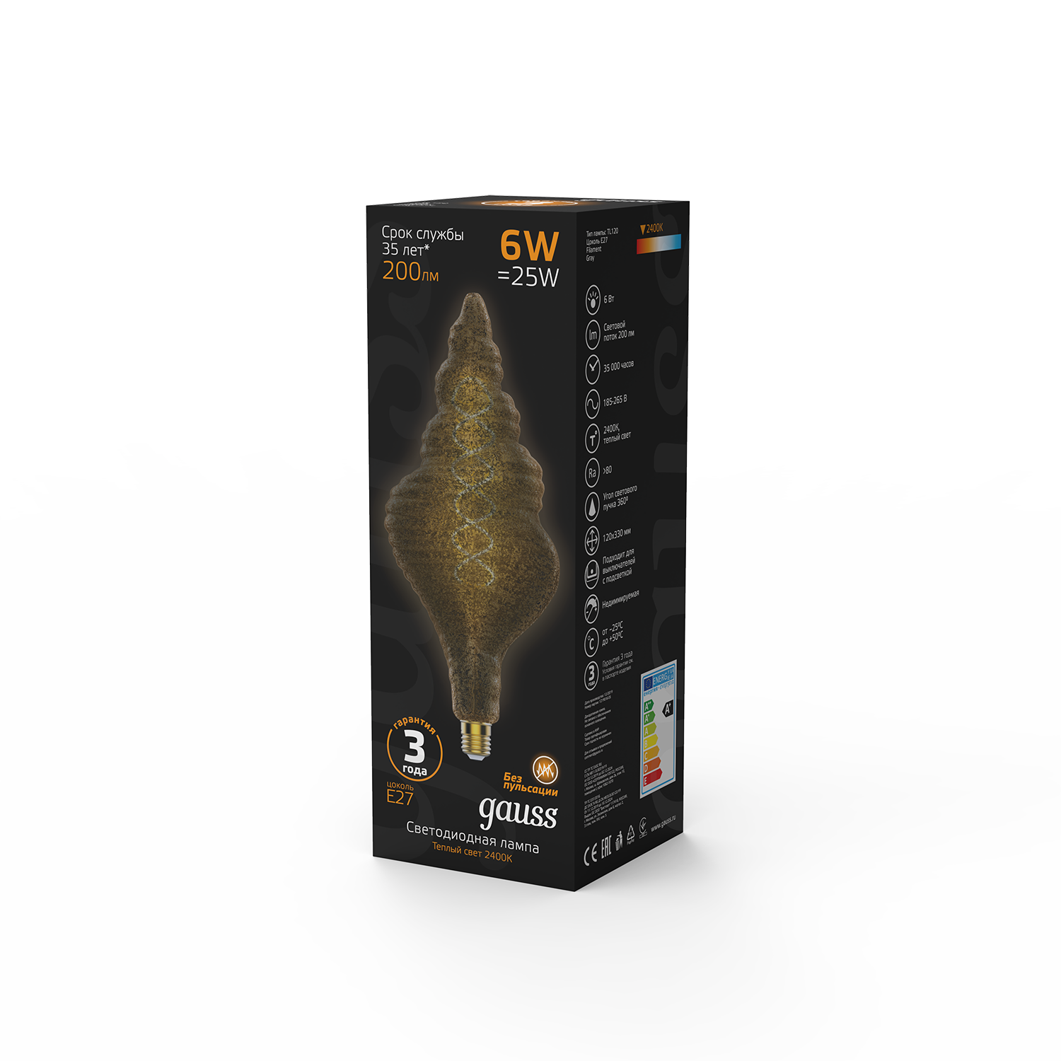 Светодиодная лампа Gauss Led Vintage Filament Flexible TL120 6W E27 120*330mm 2400K