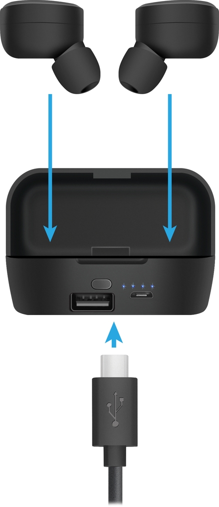 Удобный зарядный кейс емкостью 2000 мАч позволит быстро зарядить наушники и защитит их при переноске - кейс для хранения и зарядки в комплекте;