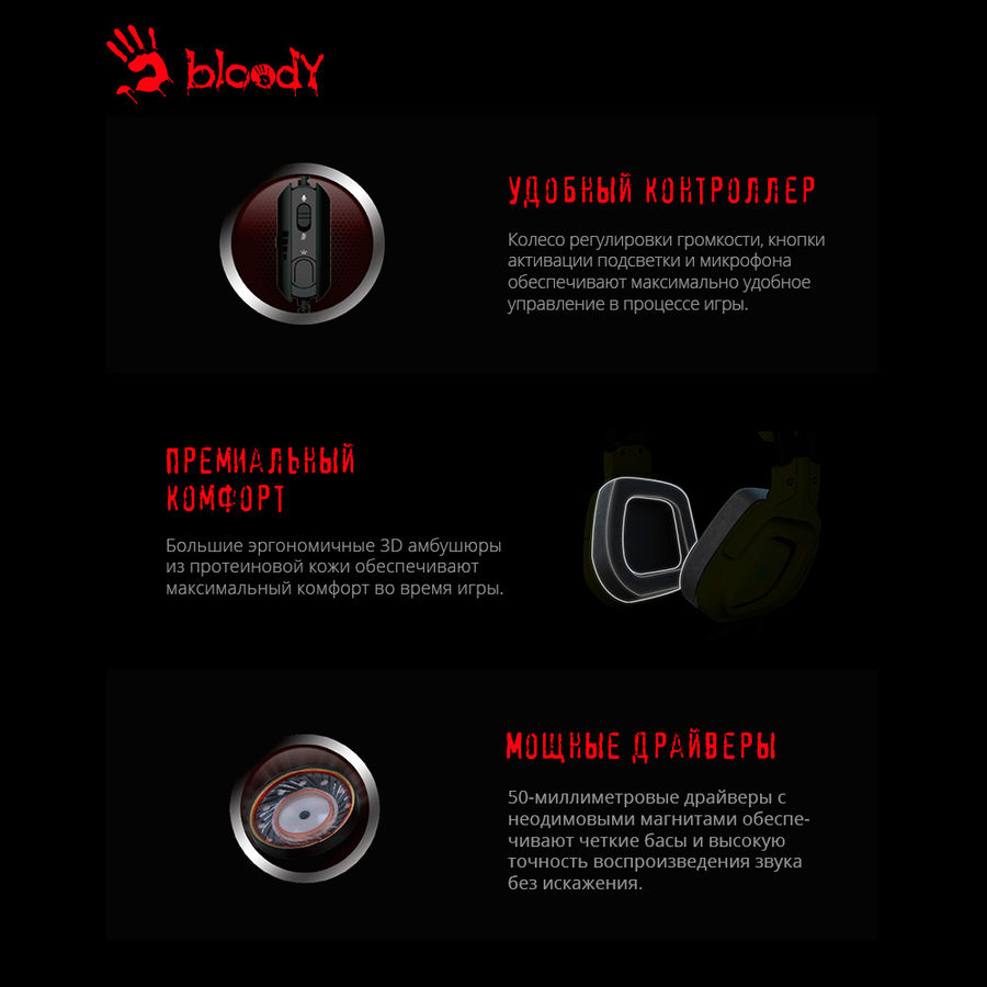 Проводная гарнитура A4Tech Bloody G575 Punk оснащена динамическими излучателями диаметром 50 мм, которые воспроизводят широкий диапазон частот от 20 до 20000 Гц. Чувствительность 105 дБ обеспечивает чистое, насыщенное звучание, подходящее для игровых баталий и общения в командах.