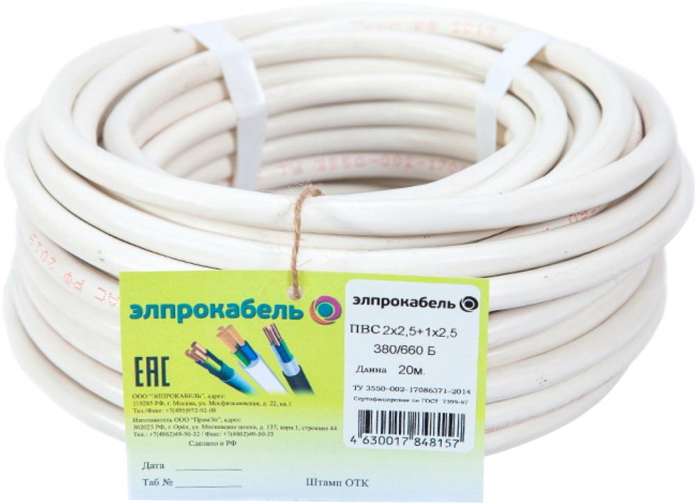 Кабель силовой ЭлПроКабель ПВС 3х2,5 4630017848157 белый