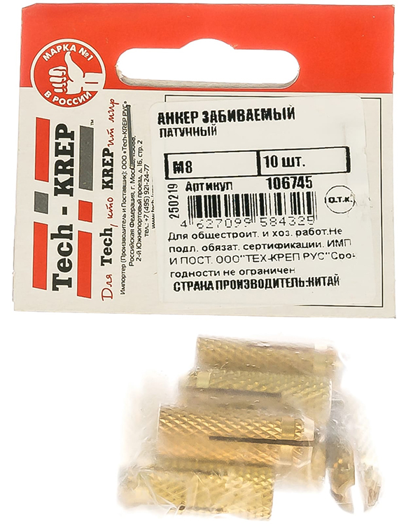 - Min вырывающая сила (бетон B25), КН - 1.1;