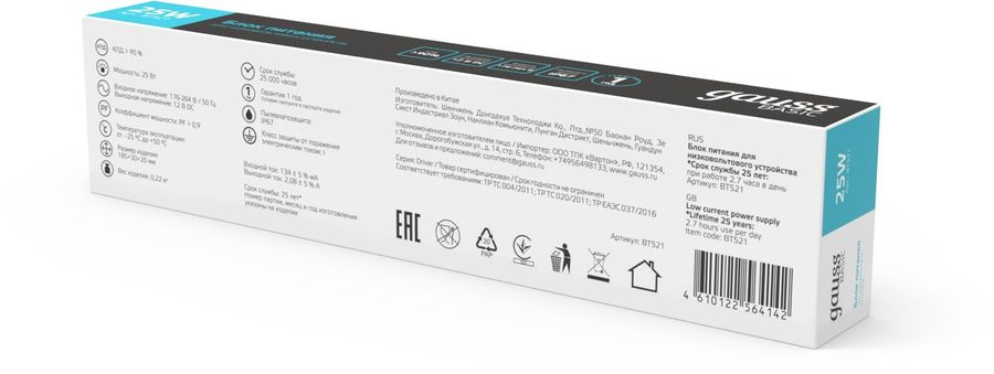Источник питания Gauss Basic 12V 25W IP67 1/80 серый (BT521)