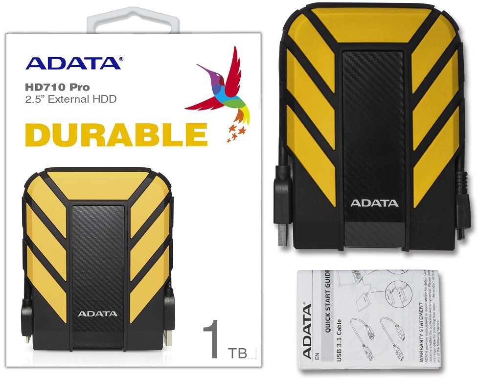 - Стандарт IP68 для противостояния неожиданностям. Благодаря опыту ADATA внешний жесткий диск имеет полную защиту от попадания пыли и возможность выживать в воде как настоящая подводная лодка. Диск HD710 Pro прошел испытания на глубине 2 метров под водой в течение 60 минут - это больше, чем требует стандарт IEC IPX8! (*Защита от воды может быть использована в полном объеме только при плотно закрытой крышке порта USB)