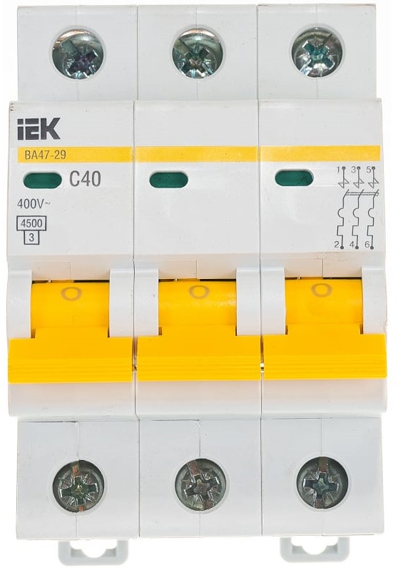 Выключатель автоматический IEK ВА47-29 MVA20-3-040-C 40A тип C 4.5kA 3П 400В 3мод белый