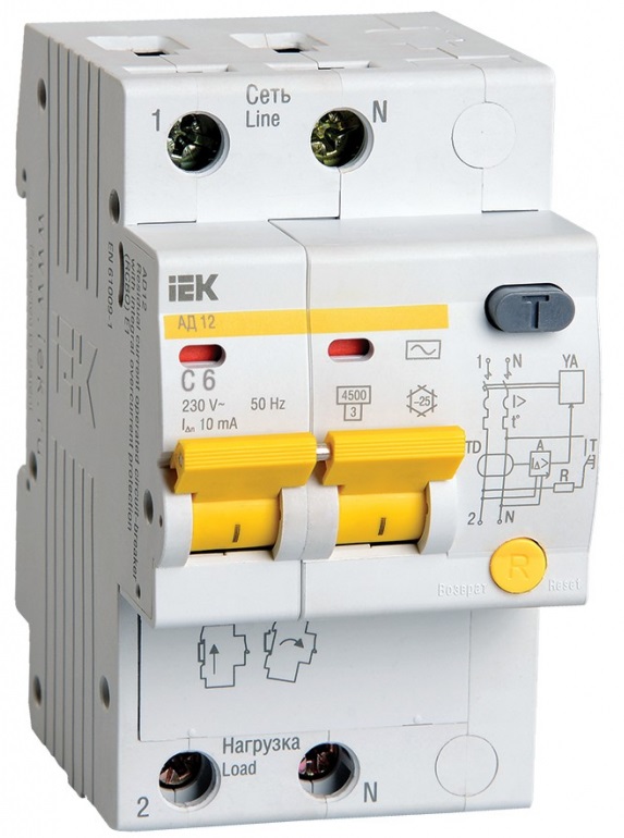 Дифференциальный автомат IEK АД12 MAD10-2-006-C-010 6A тип C 4.5kA 10мА AC 2П 230В 3мод (белый)