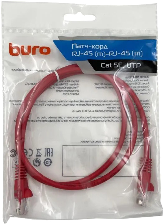 Патч-корд Buro UTP 4 пары cat.5E CCA molded RJ-45 (m)-RJ-45 (m) 1 м (красный)