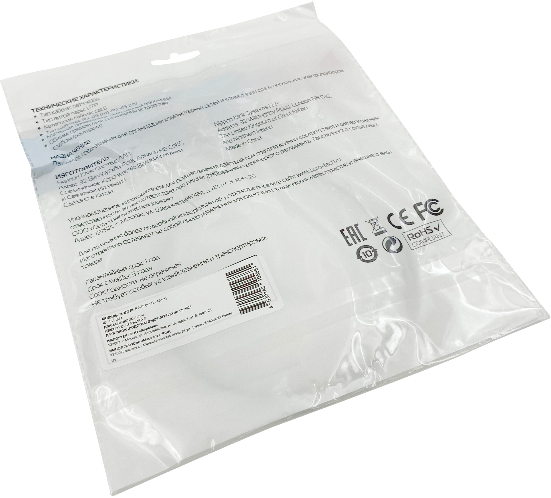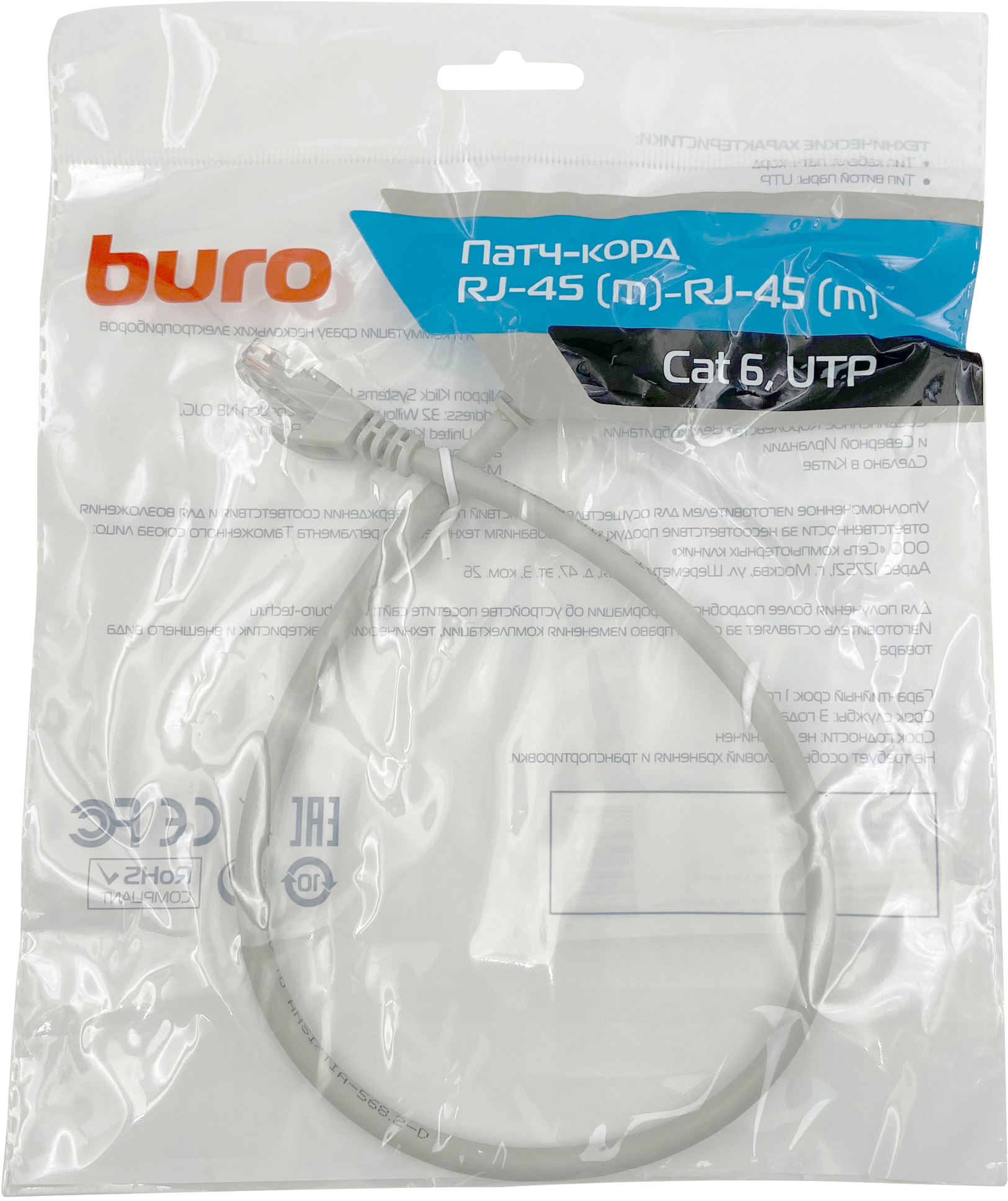 Патч-корд Buro UTP 4 пары cat.6 CCA molded RJ-45 (m)-RJ-45 (m) 0.5 м серый (UTP-6-0, 5M-G)
