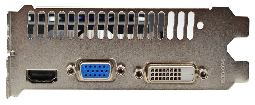 Эта модель предлагает универсальные возможности подключения благодаря наличию разъёмов HDMI, DVI и D-Sub (VGA), что позволяет использовать как современные, так и более старые мониторы. Карта работает через интерфейс PCI-E 3.0 и занимает два слота расширения. Это надёжный выбор для модернизации рабочего или домашнего компьютера.