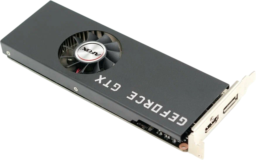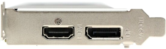 Эта модель отличается компактной конструкцией — ее длина составляет всего 160 мм, а система охлаждения занимает один слот расширения, что позволяет установить ее даже в небольшие корпуса. Активное воздушное охлаждение эффективно поддерживает рабочую температуру. Важным преимуществом является отсутствие необходимости в дополнительном питании, что упрощает установку и снижает требования к блоку питания. Для подключения мониторов предусмотрены порты DVI, DisplayPort и HDMI, с возможностью вывода изображения в разрешении до 4K.