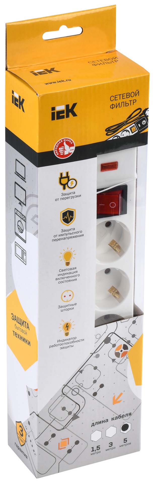 Защищает дорогостоящее и чувствительное электрооборудование от бросков напряжения в сети и перегрузок (оргтехника, аудио- видео- техника, бытовая техника).