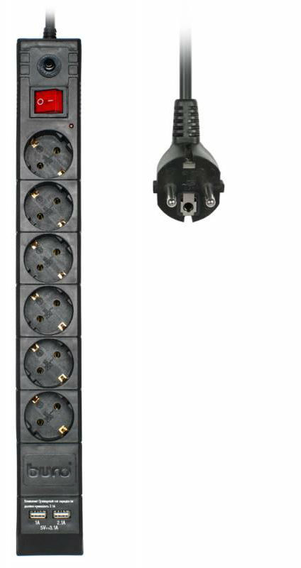 Сетевой фильтр Buro BU-SP5_USB_2A-B 5м black (черный) в кредит или рассрочку