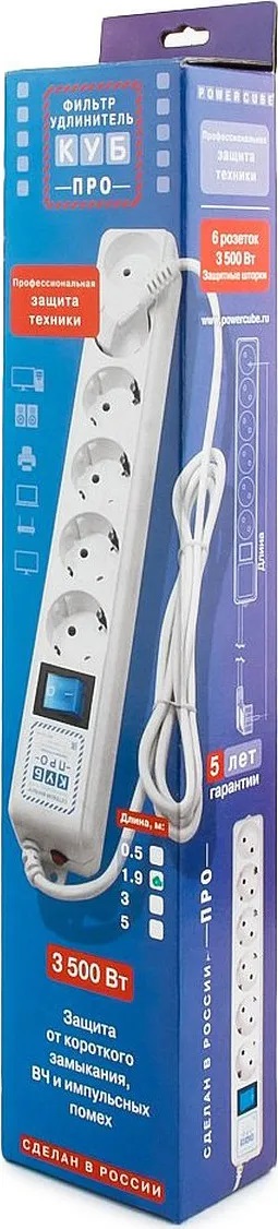 Дополнительно | 5 розеток с заземлением, 1 розетка без заземления. |