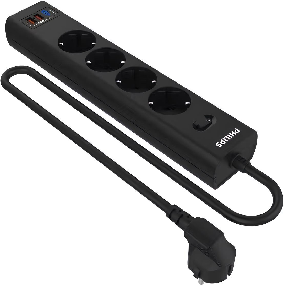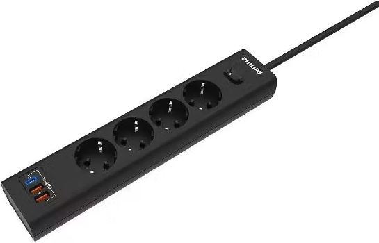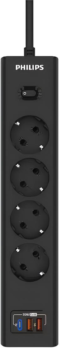 Сетевой фильтр Philips 4 Розетки с USB PD/QC3.0 (5/9/12В) 20Вт кабель 5M black (черный) в кредит или рассрочку