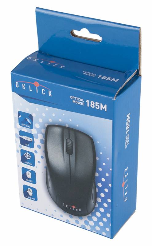 Oklick 185M – компактная модель, подходящая для домашнего и офисного применения. Благодаря эргономичной форме она не вызывает усталости рук даже при длительной работе и не способствует развитию "тоннельного синдрома".
