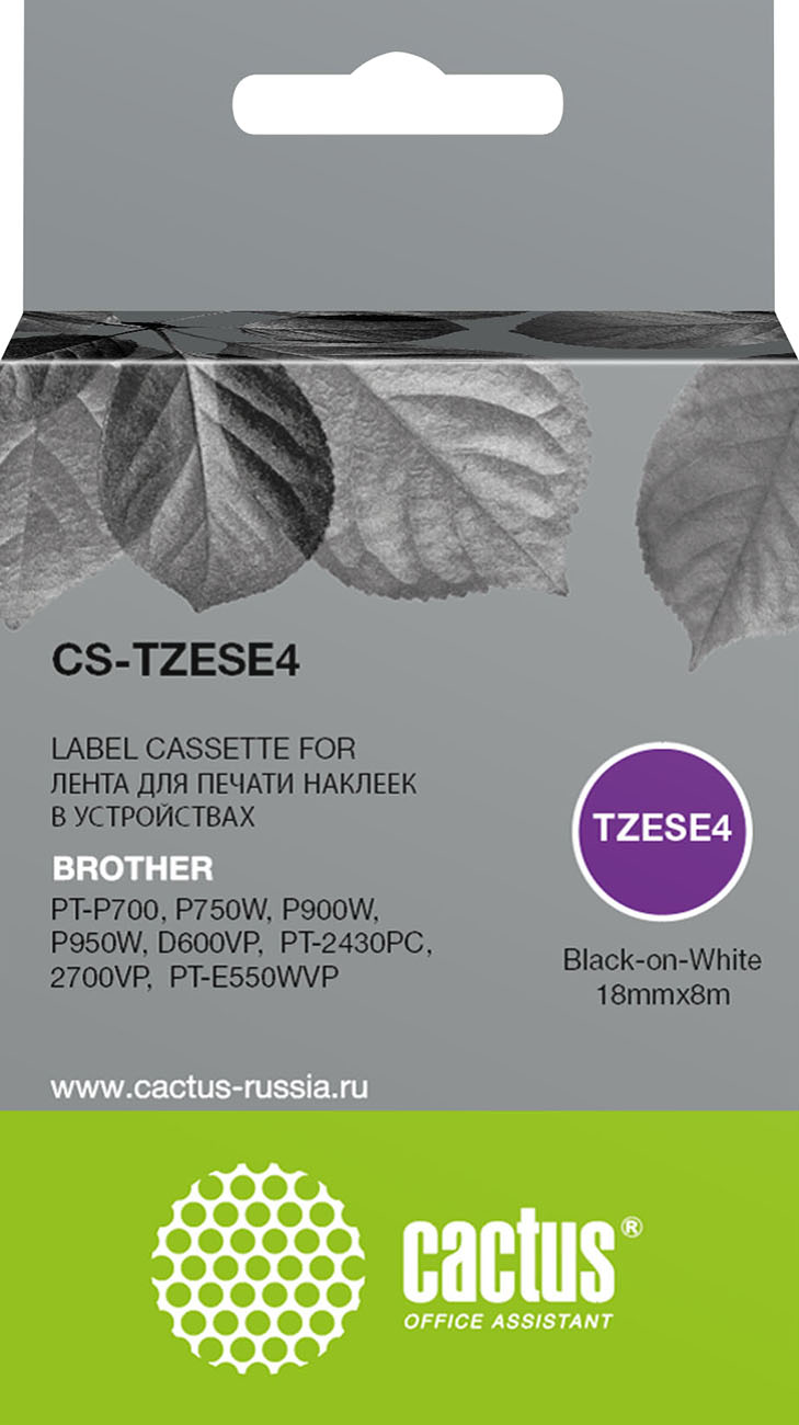 Картридж Cactus для Brother P-touch 2430pc, 2700vp, E550wvp, P750w, PT-D600vp, PT-P700, PT-P900w, PT-P950w черный (CS-TZESE4)
