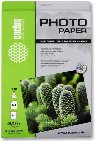 Фотобумага Cactus CS-GSA313020 A3/130г/м2/20л.