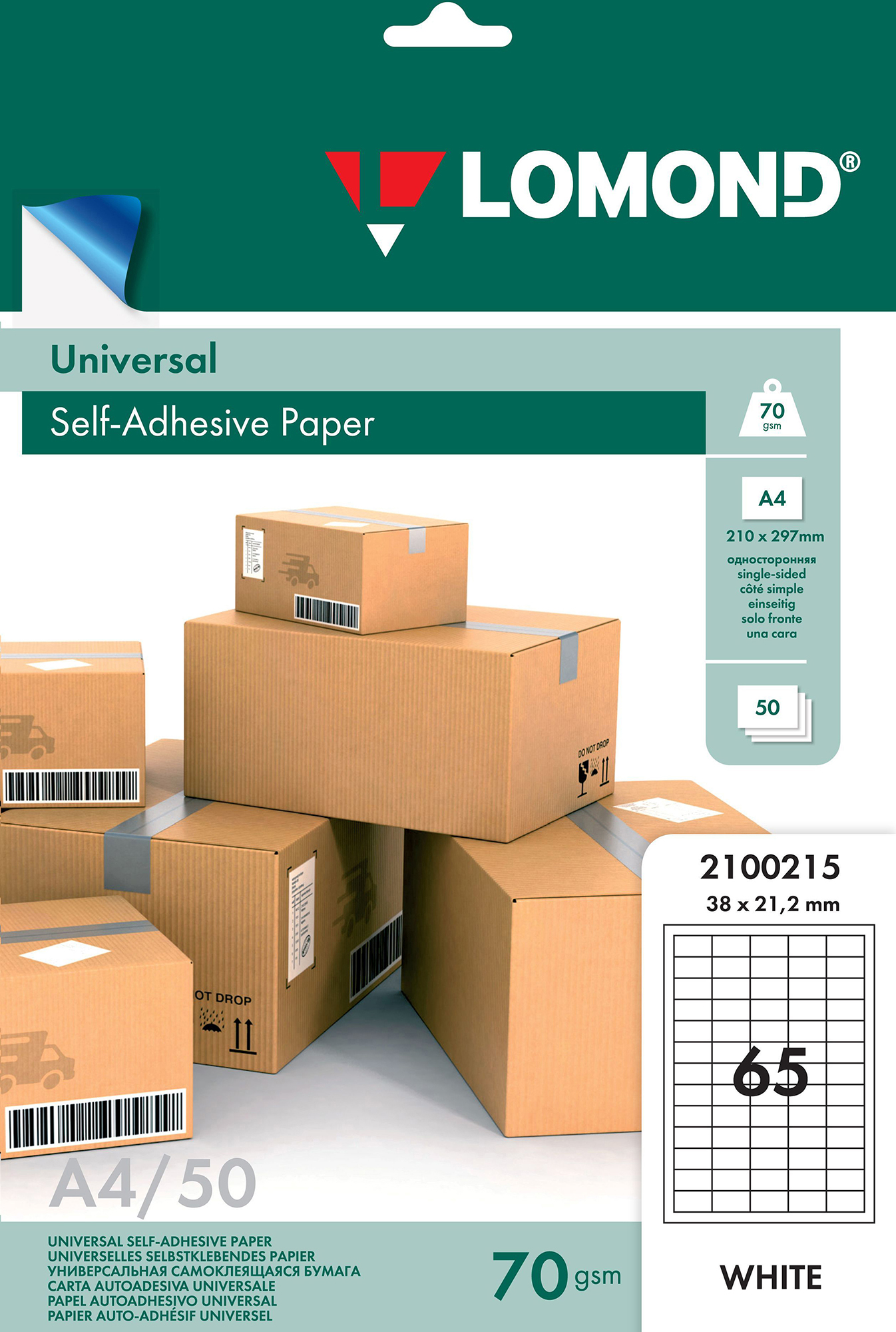 Этикетка самоклеящаяся Lomond A4 38x21.2 мм 65 шт на листе 70 г/м2 50 листов белый (2100215)
