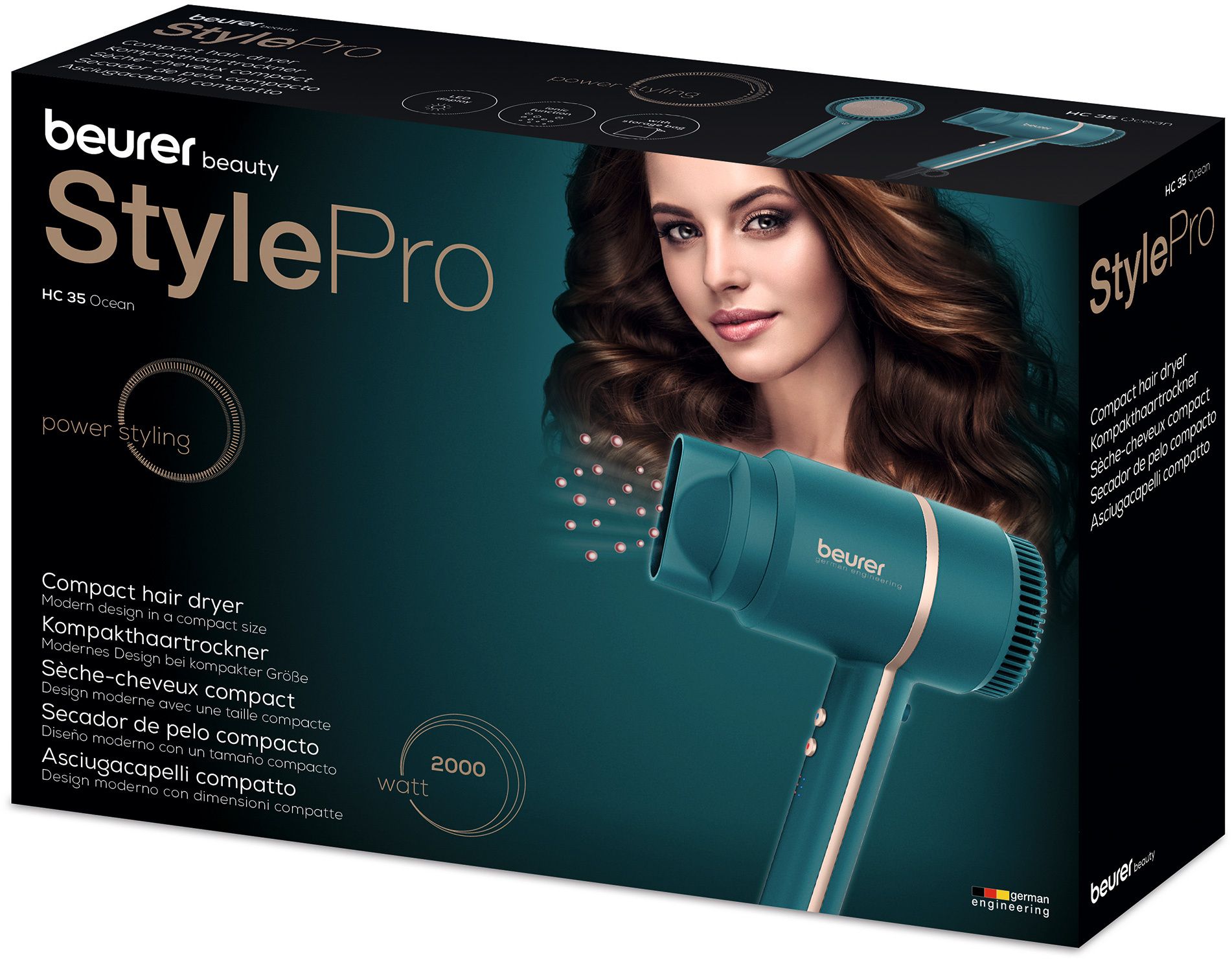 Компактный фен отличается современным дизайном и подходит для любой ванной комнаты. Благодаря практичному мешку для хранения фен можно быстро убрать в шкаф и удобно перевозить в дорожной сумке.