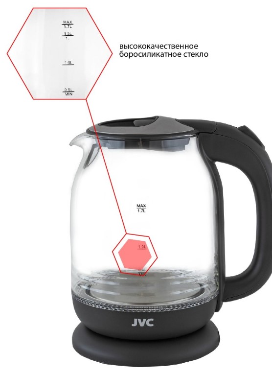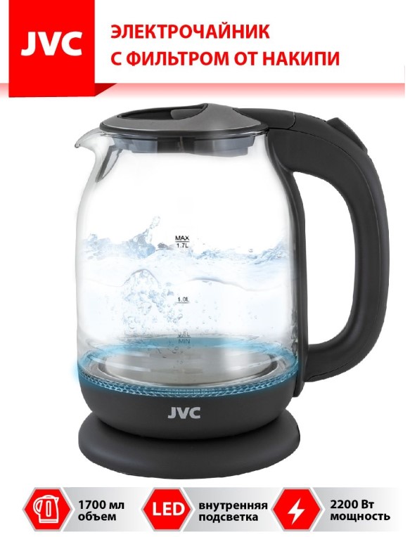 Стильный электрический чайник JVC JK-KE1510 из высококачественного пластика и боросиликатного стекла со светодиодной подсветкой станет оригинальным украшением вашей кухни и прекрасным подарком друзьям и родственникам. Чайник имеет оптимальный объем 1,7 л., на корпусе расположен индикатор уровня воды. Длина шнура составляет 72 см., при необходимости шнур можно убрать в подставку. Для защиты от накипи предусмотрен сетчатый фильтр. Модель представлена в двух цвета - белом и сером.