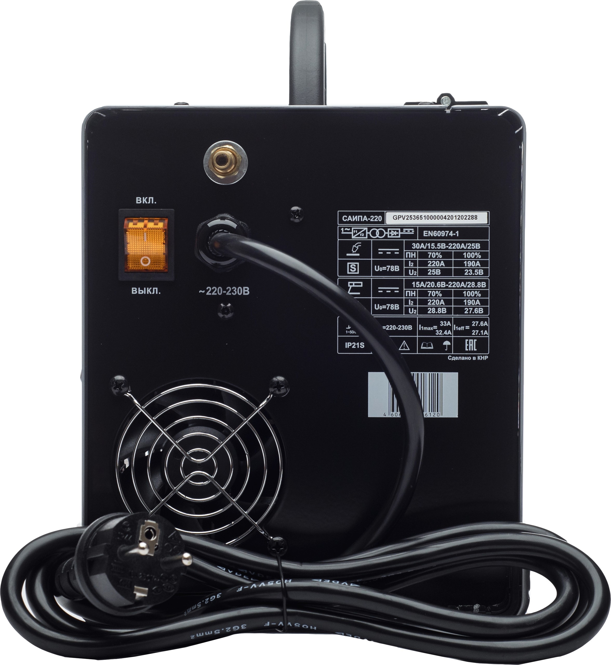 Прочный полуавтоматический инвертор для сварки в среде защитного газа автоматически подаваемой с заданной скоростью проволокой толщиной от 0,6 до 1 мм. Диапазон регулировки сварочного тока – от 30 до 220 В, вес сварочного аппарата – 14,7 кг.
