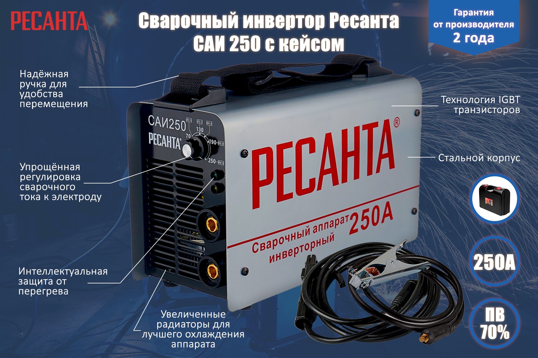 Инверторный сварочный аппарат Ресанта САИ 250 в кейсе
