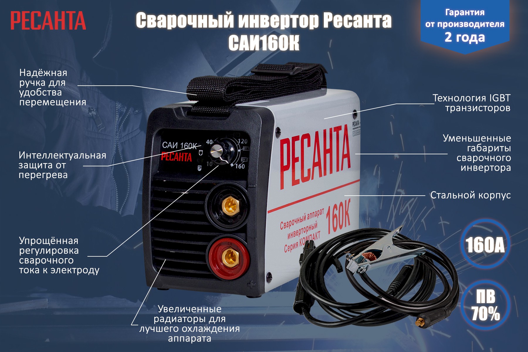 Инверторный сварочный аппарат Ресанта САИ-160К (65/35)