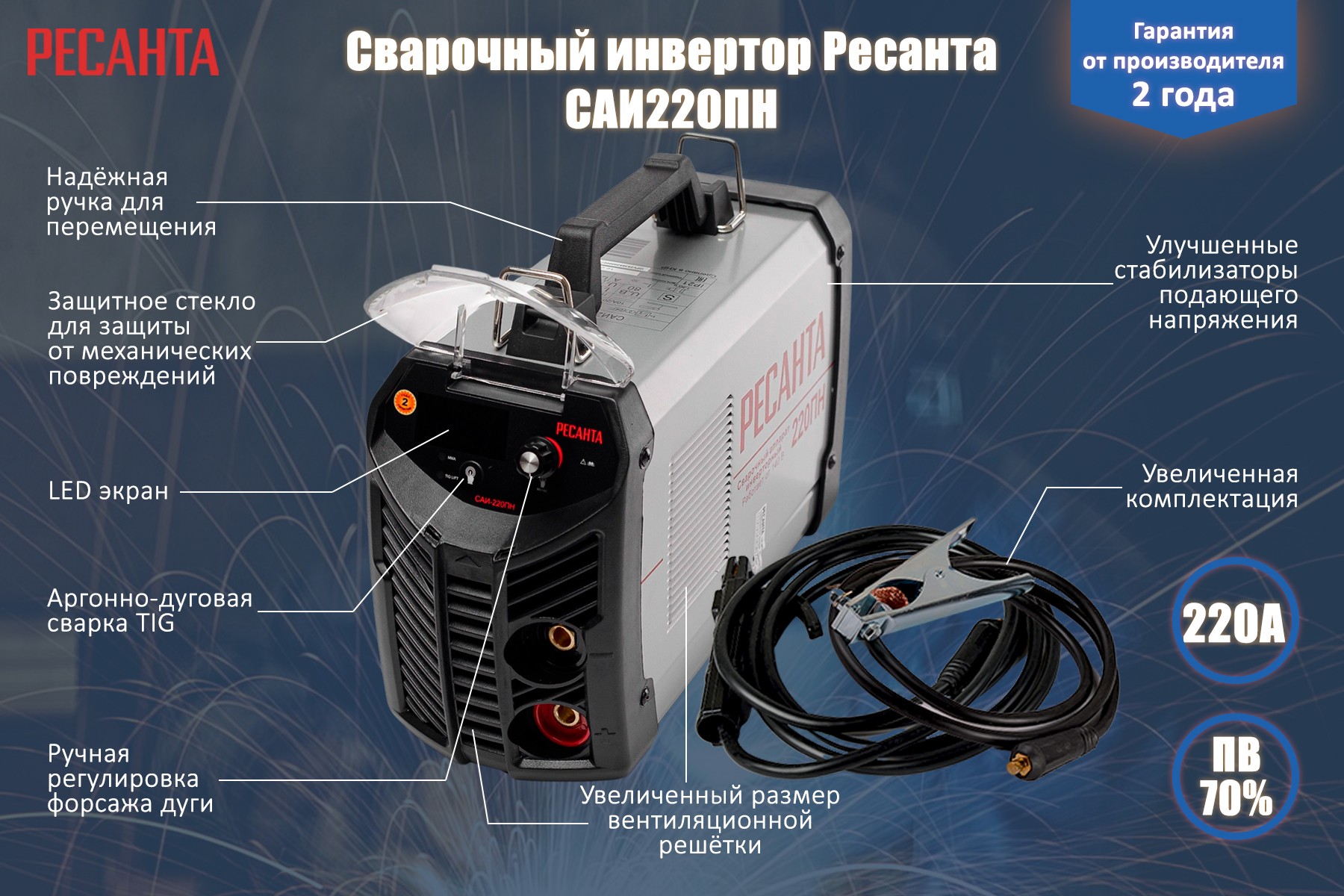 Инверторный сварочный аппарат Ресанта САИ-220ПН