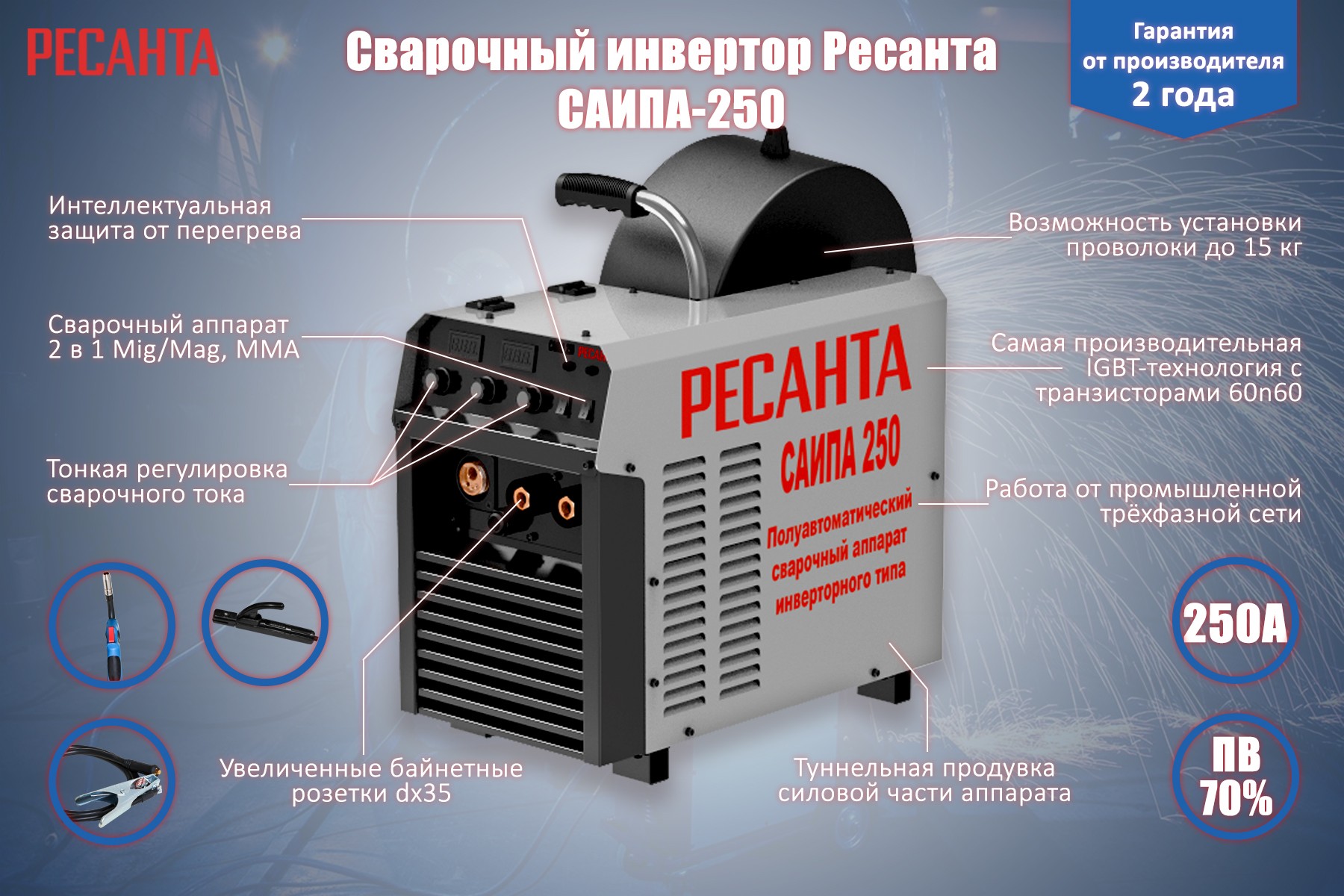 Сварочный аппарат инверторный полуавтоматический – современный инверторный полуавтомат, изготовлен по передовой IGBT технологии.