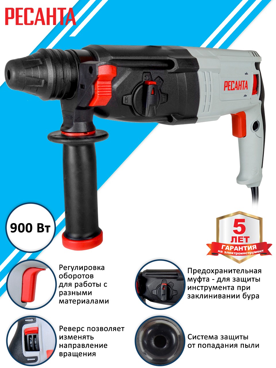 Перфоратор Ресанта П-30-900К (серый)