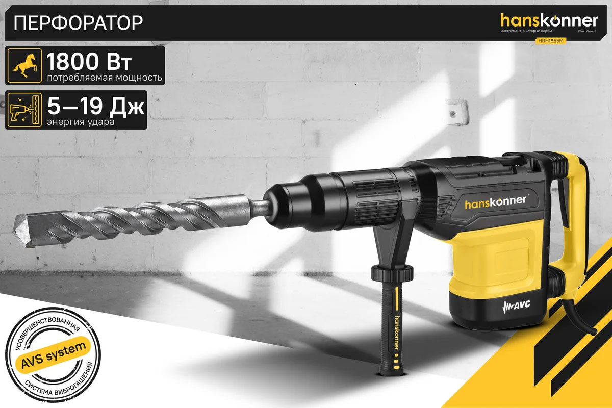 Перфоратор Hanskonner HRH1855M (желто-черный)