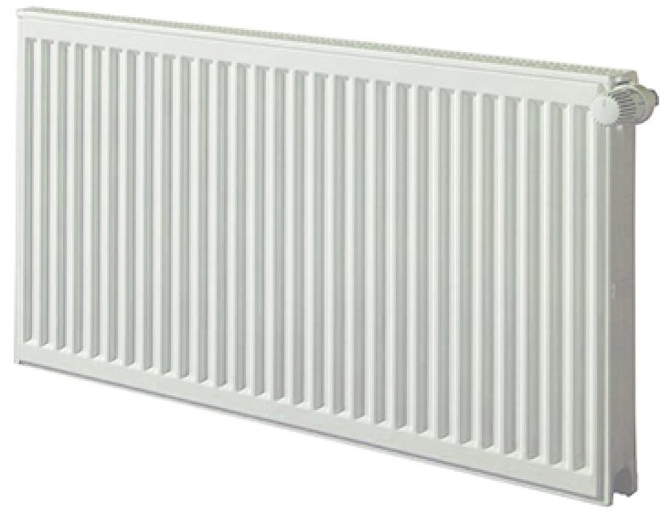 Радиатор Axis Ventil имеет нижнее подключение. Трубы подачи и выхода теплоносителя монтируются близко друг к другу с правого нижнего края радиатора. Выход расположен ближе к боковой грани. В конструкции радиатора предусмотрен клапан Danfoss RA-N 013G1382 для регулирования потока теплоносителя.