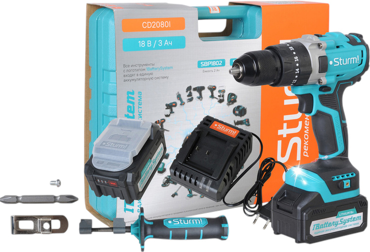 Аккумуляторный ударный шуруповерт Sturm! CD2080I (черно-голубой)