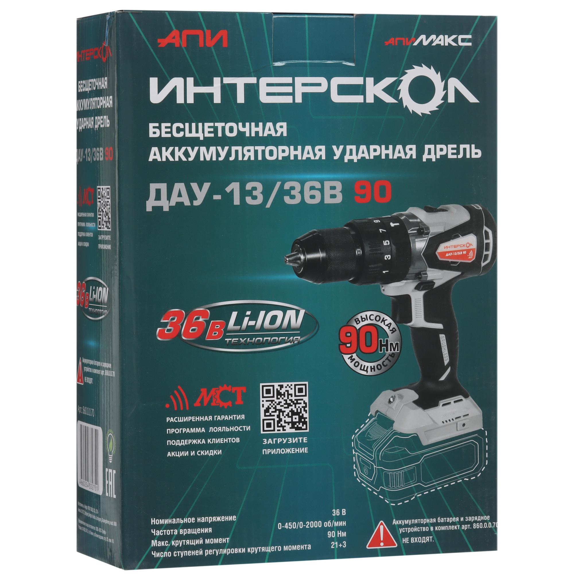 Ударная аккумуляторная дрель-шуруповерт Интерскол ДАУ-13/36В 90 без АКБ и ЗУ серо-черный (860.0.0.70)