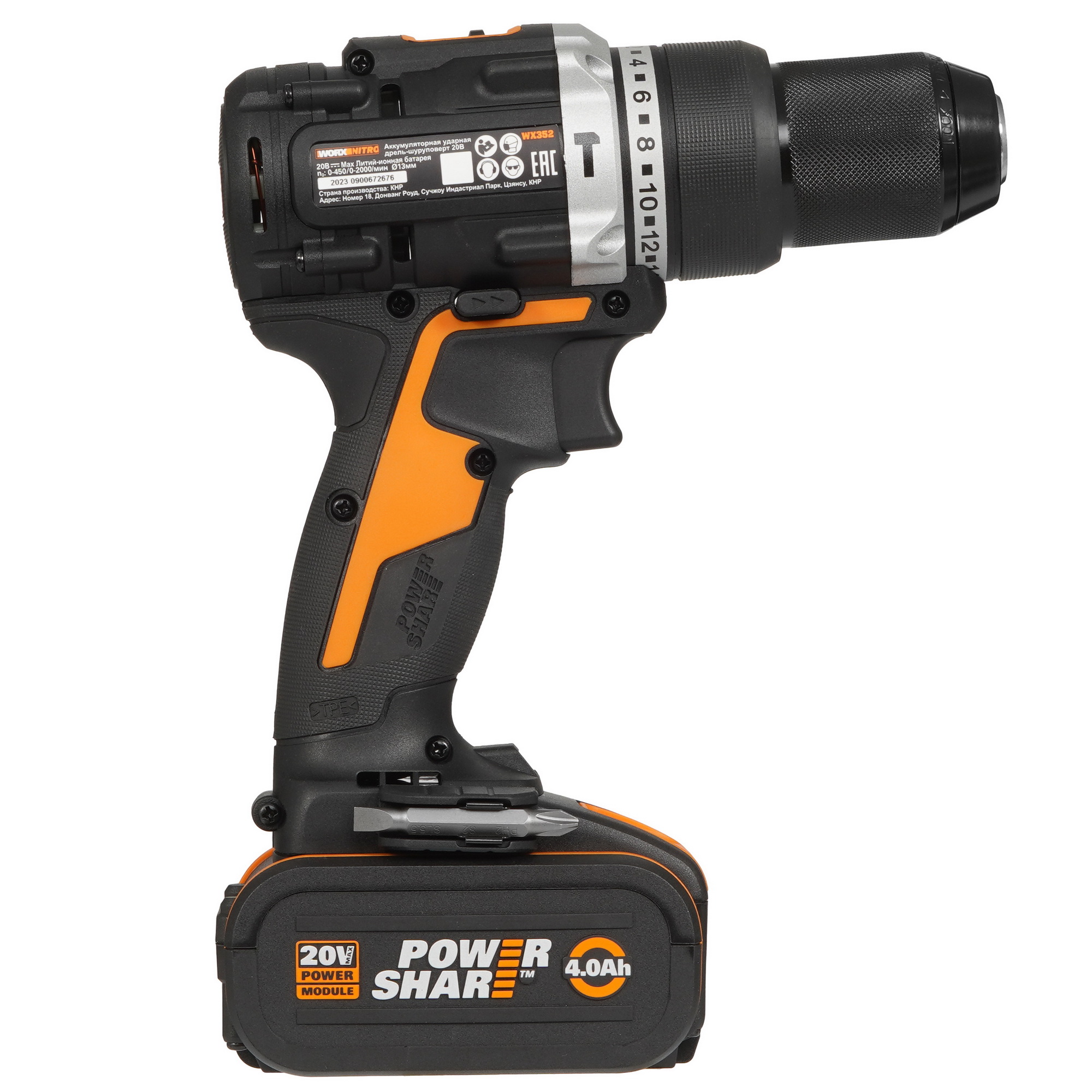 Ударная аккумуляторная дрель-шуруповерт WORX WX352.1 (черно-оранжевый)